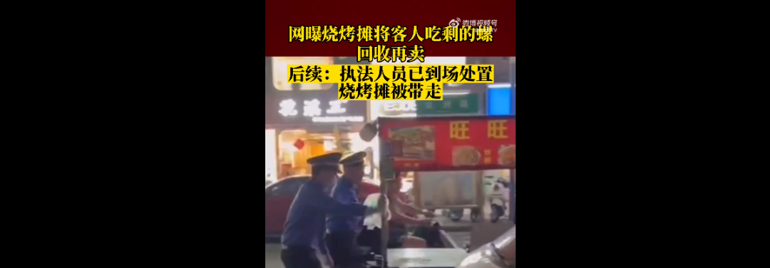 烧烤摊将客人吃剩的螺回收再卖?后续:执法队员到场处置,涉事摊点被收摊!