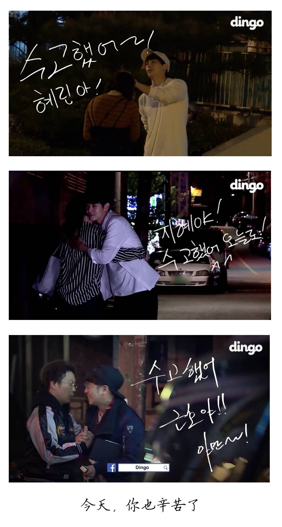 每段视频交代一位打工者的故事,或许是在理发店打工的女生,或许是在服装厂流水线上的工人,或许是怀揣烹饪面包梦想但身体条件不允许的男生,也可能是公司职员……很动人的一点是,艺人出现的时刻,会亲切的叫出那些普通人的名字。之后就是两人一起聊聊天,帮主人公整理没做完的工作,然后送他回家。有一期是男idol背着女生到她家楼下(可以说是丧心病狂了),当然也有两个人就普普通通散着步回家的时候。