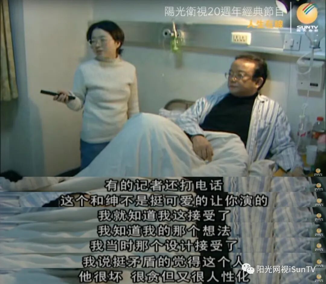 本期我们来重温阳光卫视拍摄于2001年的《人生在线:王刚》,当时53岁的王刚因为肺炎住院,病榻中不忘收看出演的电视剧《铁齿铜牙纪晓岚》,给自己的演技挑毛病。