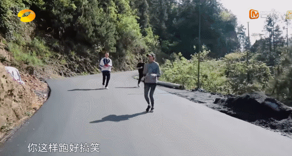 张钧甯一直领跑在最前面,并且以S形遛弯,两人都跟不上,直呼,姐姐你体力太好了。