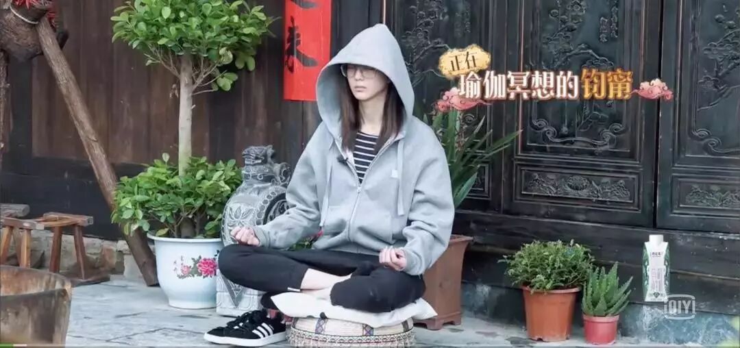 节目中的张钧甯,天没亮就起来了,早起之后第一件事就是安静的盘坐冥想,直接把黄磊看懵了。