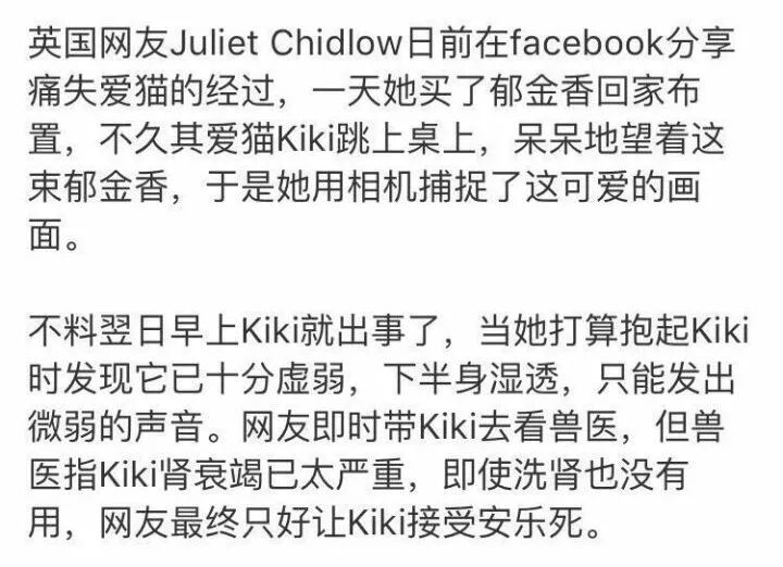 ▲猫咪舔食百合花导致肾衰竭