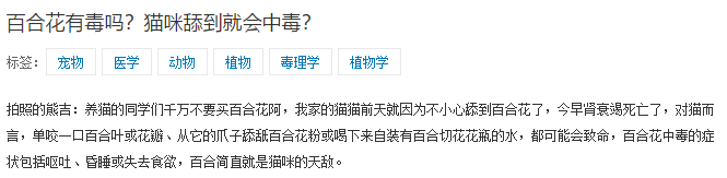 除此之外,还有很多花草对猫咪来说都是有毒的,小迪建议大家先查阅相关资料,确认这种植物对猫咪无害再行购买。