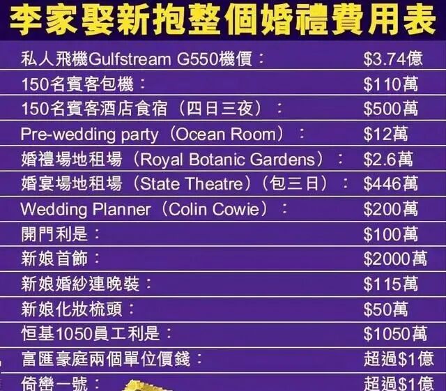 整套婚礼流程下来花费超过7亿,但更可怕的是她的公公李兆基却说:“这些钱我一天就能赚到!”