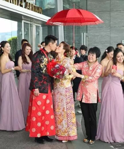 一对新人更是跟住传统礼节在举行婚礼前不见面,全程都只靠电话保持联络。二人在娱乐圈中的人缘都甚佳,所以在这次婚礼中,阵容强大的18位伴娘及兄弟团都相当抢眼!来,小编马上给你们上图~~