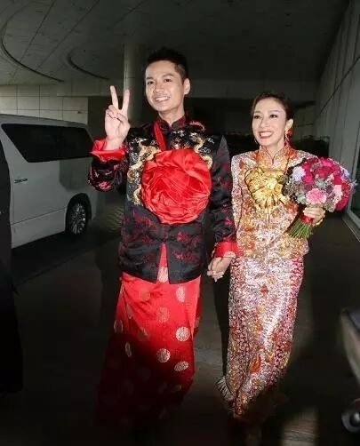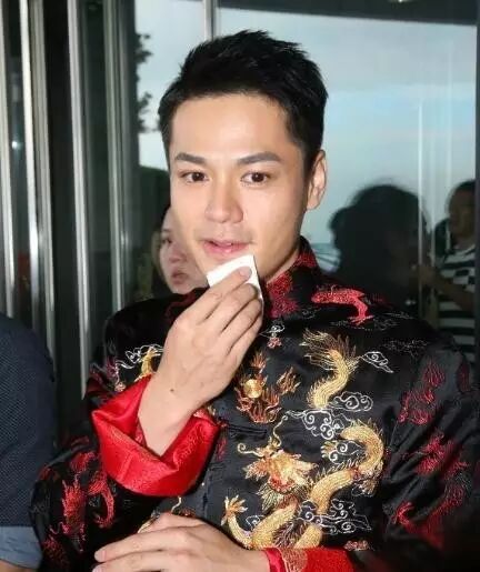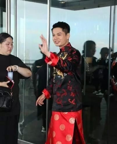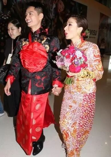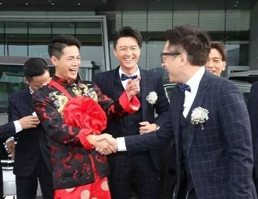 而新郎哥罗仲谦八点几亦都现身,穿上身黑,下深红的中式传统礼服现身,霸气十足!