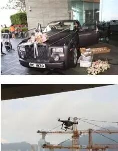 到八点左右,花车及另外三架七人车已经在现场准备就绪了,现场更是出动了航拍机,认真系大阵仗!