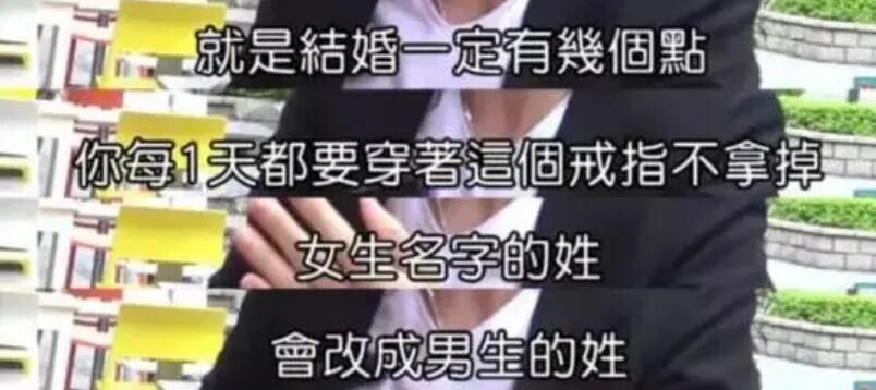 分手那段时间网上一段传闻相当热烈,说锦荣接受采访时大言不惭表示自己在婚姻上是传统的人,希望对方能做到“冠夫姓、婚戒不离手、财产共有”。
