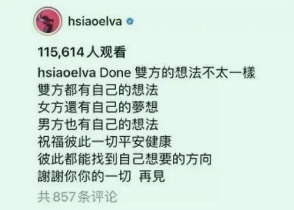 恋人分手除了三观就是未来发展的不同。其实网络的一种说法也并非不可信:两人最终还是基于对未来发展产生严重分歧,才导致了分离。
