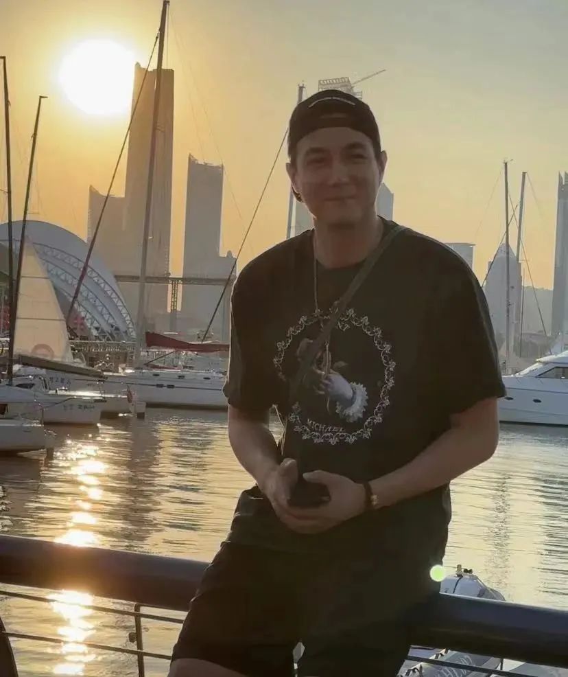 照片里的黄皓如今明显胖了些,五官着装也不再刻意精致,但反而也有种松弛的成熟洒脱感。