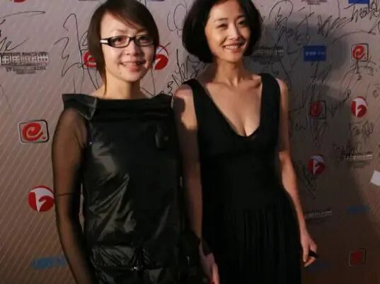 从这张合照里面可以发现两个人身上穿的都是黑色的裙子,不过刘蓓身上穿的这条裙子看起来会比较的清爽。不仅采用的是无袖的设计,而且前面的领口比较低,所以就暴露了自己比较丰满的事业线,感觉还是比较吸引大家的眼球。