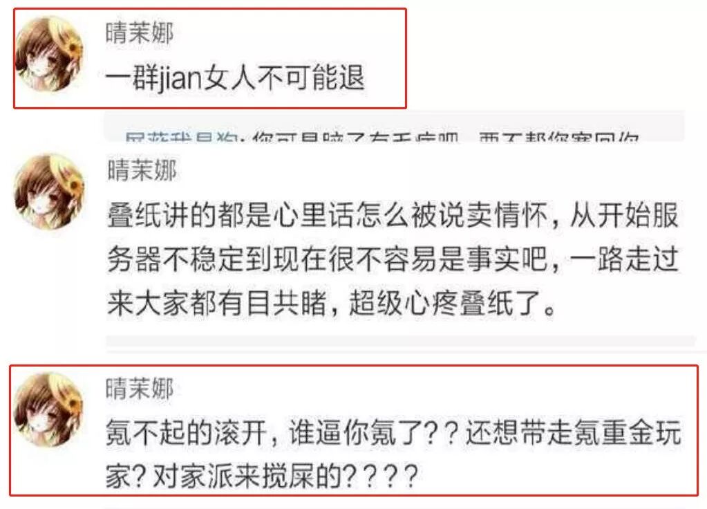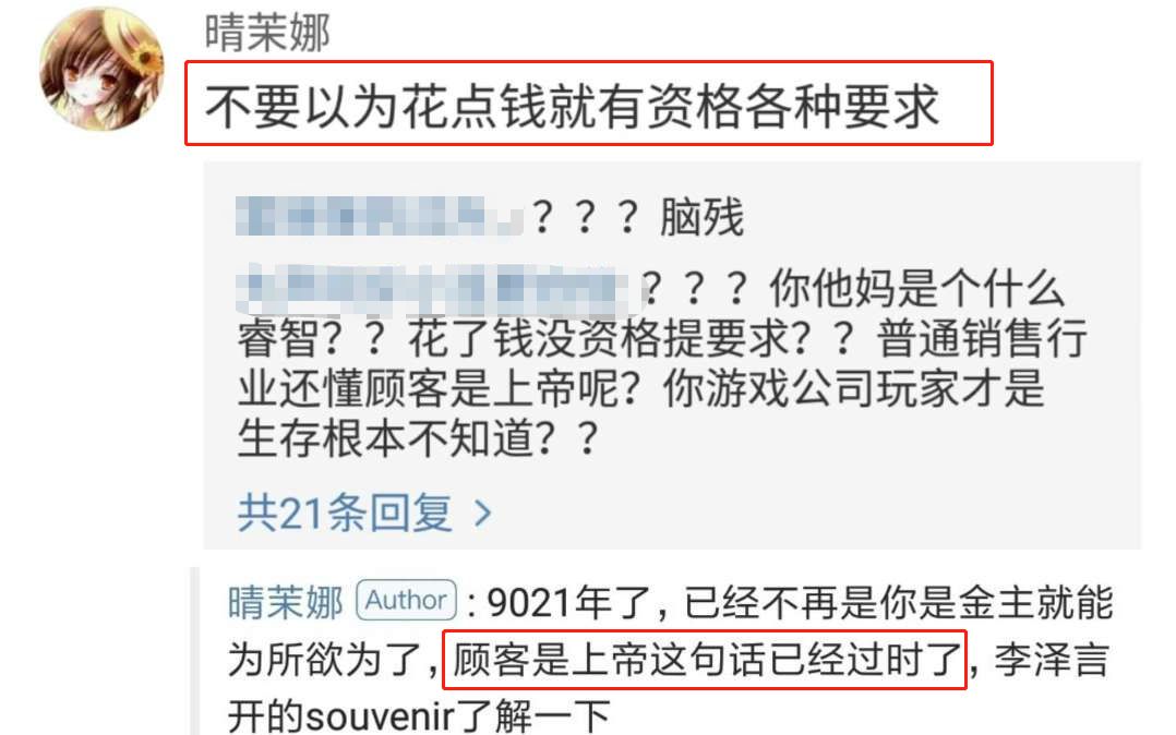 看不起女性玩家,认为她们每次都用退游来威胁公司,有新活动照样跪舔。