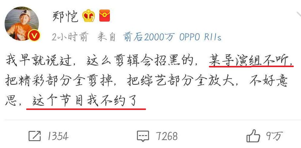 结果节目组还没有发声,郑恺却先在微博上怒斥了节目组“恶意剪辑”。