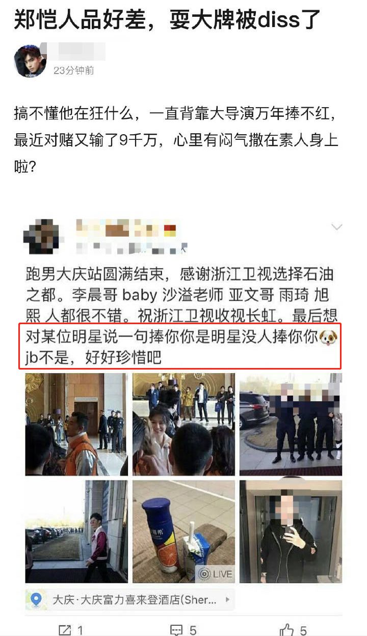 昨日,有网友爆料了郑恺在跑男大庆站录制现场耍大牌的消息。