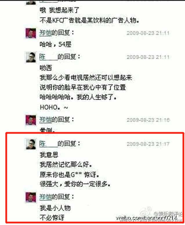 床照被爆出后不久,紧接着又有人爆料了郑恺实际是个gay,并且晒出了他早期(2009年)的一张聊天截图。