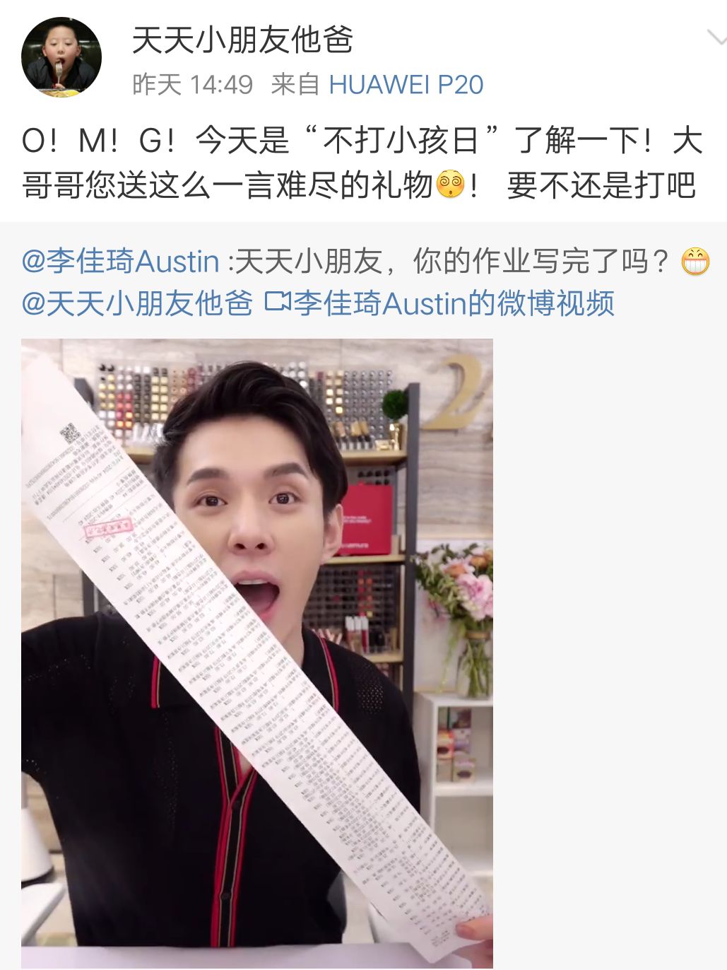 紧接着,@李佳琦 也不甘示弱,亲自发了一段小视频,和人家battle起来,隔空喊话:@天天小朋友,你的作业做完了吗?