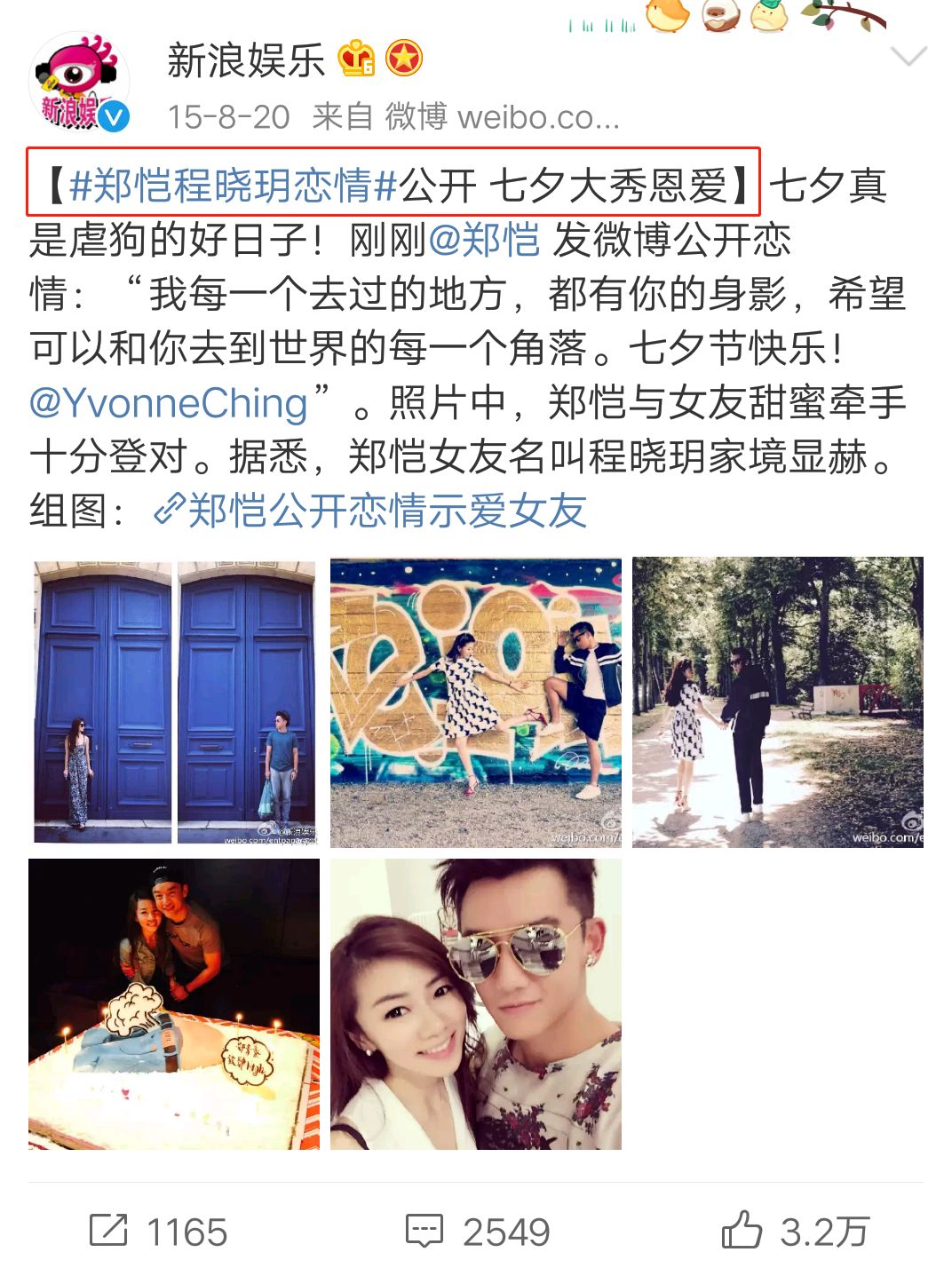 但2015年七夕,郑恺公布了自己和程晓玥的恋情,关于他是Gay的传闻就渐渐没人再提了。