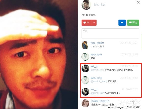 随后,天涯也有网友去扒了郑恺,无意中找到了他的ins主页。