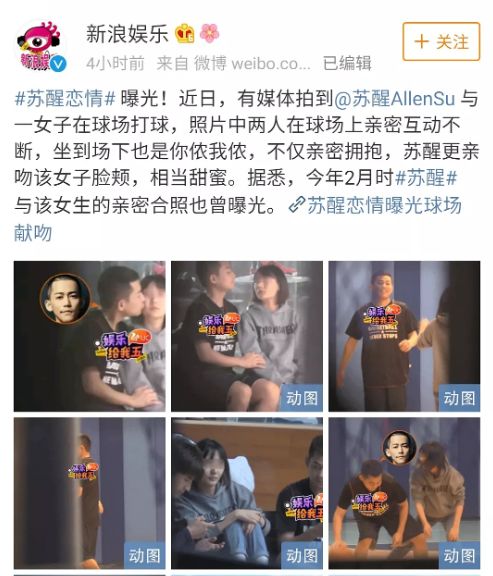 事情是这样的,有记者拍到苏醒和4个女生一起逛商场,刚从商场出来的时候,苏醒搂着其中一个穿灰色衣服的女生,在拐角处,还能清楚地看到他捧着女生的头亲了一口。
