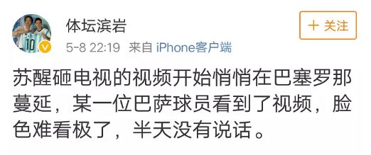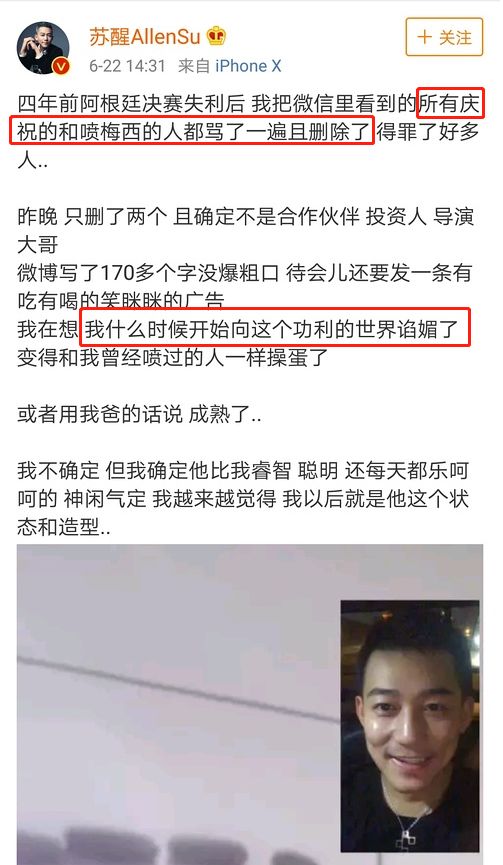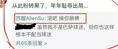 比如他是巴萨和梅西的球迷,但每当梅西输了球或者赢了球,他都会做出一些出格的举动。有一次巴萨输了球,苏醒直接发了一个砸电视的视频,这个举动让大家怀疑他有暴力倾向,且作为一个成年人了还控制不住自己的情绪。