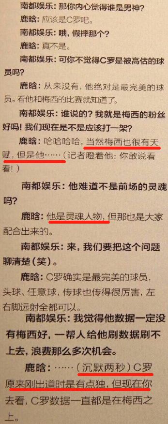 可以对比着看一下鹿晗的采访,鹿晗是C罗的球迷,但当记者正面dissC罗的时候,鹿晗就表现得很尊重对方,不仅非常客观地跟记者辩论,还肯定了记者喜欢的梅西的成绩。