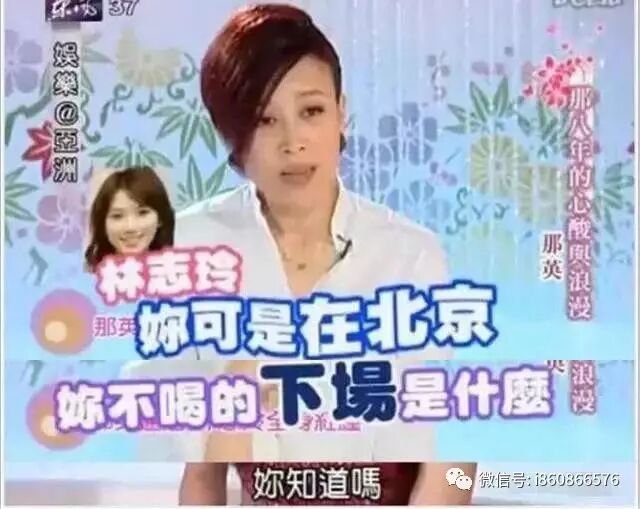 林志玲推脱:“我喝完了会全身都红。”那英说:“林志玲,你可是在北京!你不喝的下场是什么,你知道吗?后来林志玲就喝了。