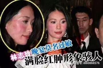看图片,志玲姐姐的脸真的很红,酒精过敏的缘故。