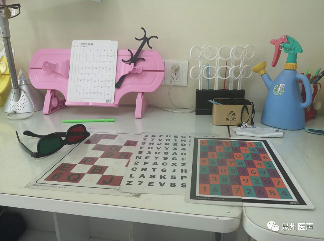 在小儿眼科二楼训练室,还配备有各种仪器与器械和训练用道具,用以针对斜/弱视进行系列训练治疗。