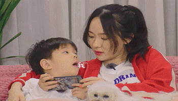 嗯哼不开心的时候,霍思燕一撒娇,嗯哼就反过来哄妈妈。