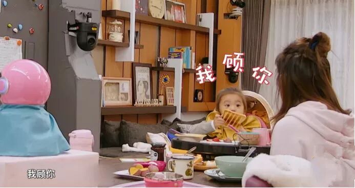 上一秒还在餐椅上闹腾的咘咘一秒变懂事:我(照)顾你。