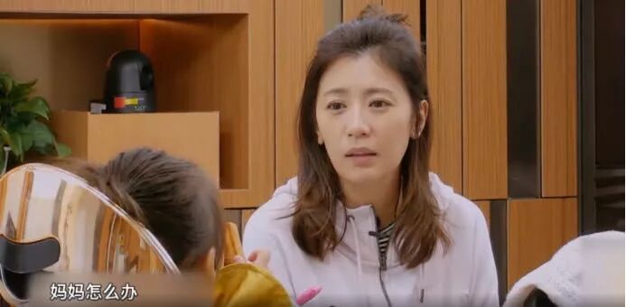 节目组规定除了妈妈以外的其他大人都要离家48小时,平常比较少做家务的贾静雯立刻向女儿撒娇。