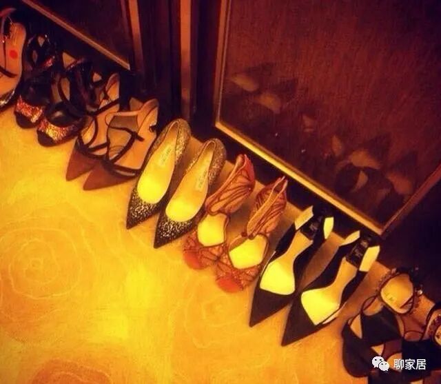 参观秦海璐和王新军的家,客厅一排都是高跟鞋,每双款式还不一样