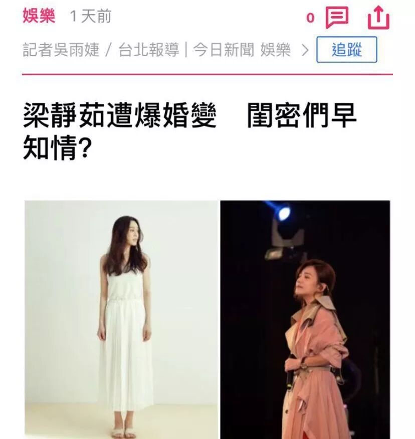 昨天,台媒突然爆出“梁静茹因丈夫出轨,结束了9年的婚姻”的消息。