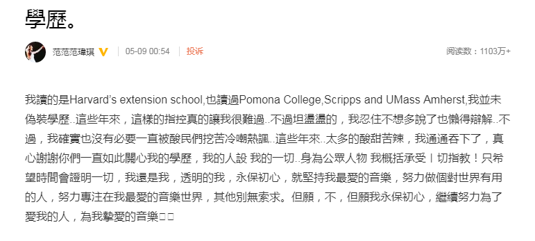 范玮琪一直以“哈佛毕业”作为宣传噱头。