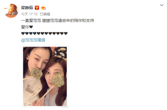今天下午,梁静茹晒与范玮琪的合影,并发声感谢范玮琪多年的陪伴和支持。