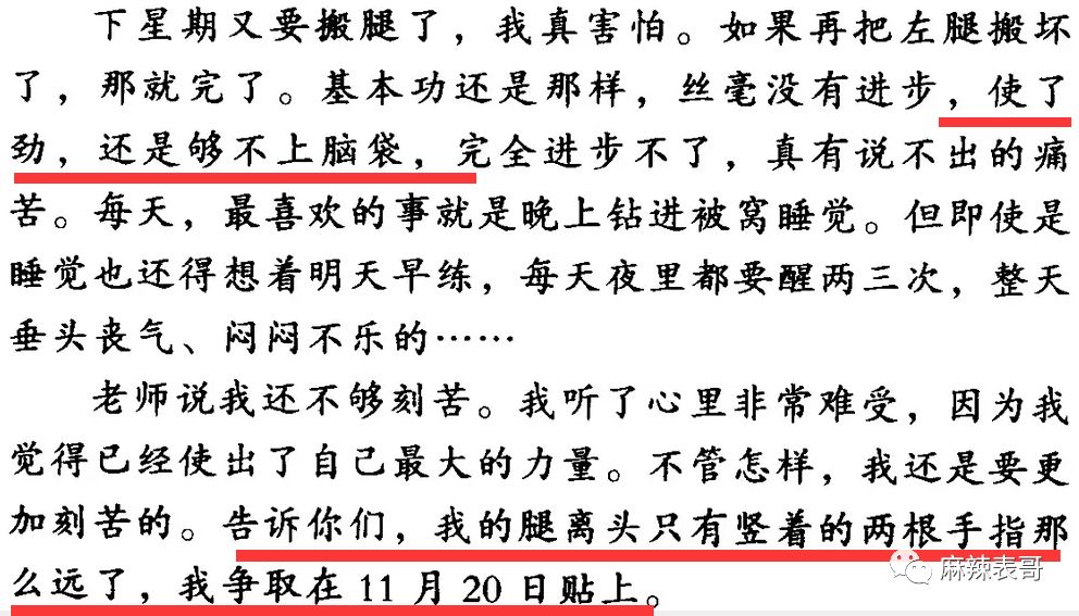 练了很久,使了劲,还是够不上脑袋,老师说她不够刻苦,她听了心里非常难受。