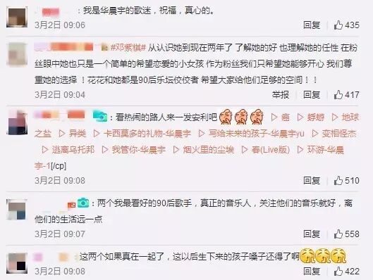 围观网友表示虽然不了解这两个八竿子打不着的人是什么时候在一起的,但是看起来好配,都是热爱音乐、心中自有一番世界的好歌手,歌迷们也纷纷送上了祝福。港真,两位当红偶像毫无预警的被爆出恋情,歌迷还这么和谐的画面真是少见。