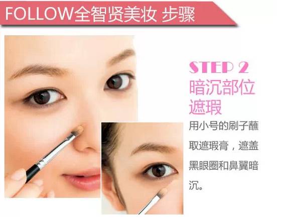 2. 鼻翼的暗沉部位也要注意,可以用手指把遮瑕膏按压,与粉底融合。