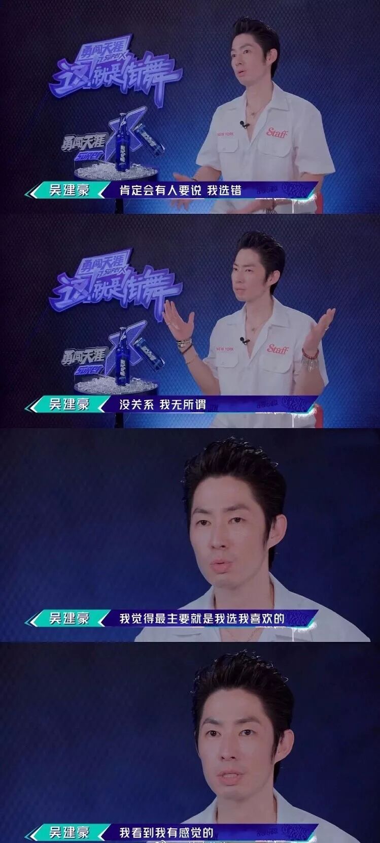 吴建豪猜到放弃周游一定会引来质疑。他说,“我主要选我喜欢的、有感觉的。” 周游是实力派dancer没错,可不一定是他想要的选手。毕竟赛制本身要求队长们要有清晰的战队构建想法以应对后续的比赛。