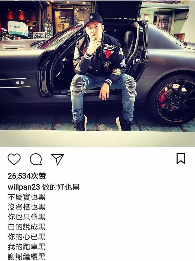 潘玮柏在INS上疑似回应这些传闻:做的好也黑,不属实也黑,没资格也黑,你也只会黑,白的说成黑,你的心已黑,我的跑车黑,谢谢继续黑,Haters。