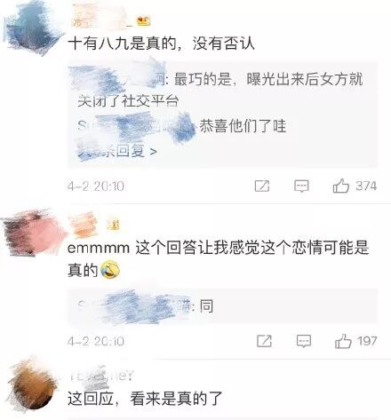 而且,最让人震惊的是,上一回火速否认恋情的工作室,这一回对爆料的回应是:“对于艺人私事不予回应”。