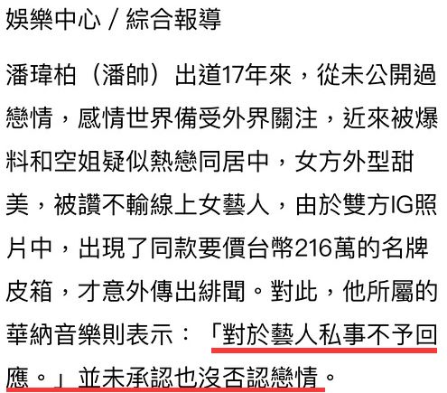 台媒报道称,潘瑋柏和某空姐热恋了,而且还是同!居!中!