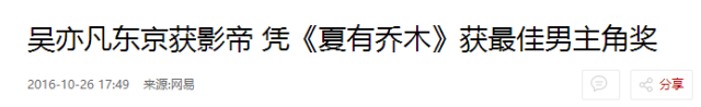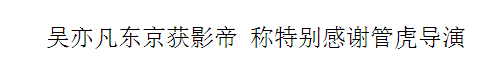 官方曝出的消息是:第29届东京电影节中国电影周26日闭幕,并为首届金鹤奖举办了颁奖典礼,吴亦凡凭借《夏有乔木,雅望天堂》获得影帝,这也是他从影以来的首个影帝。