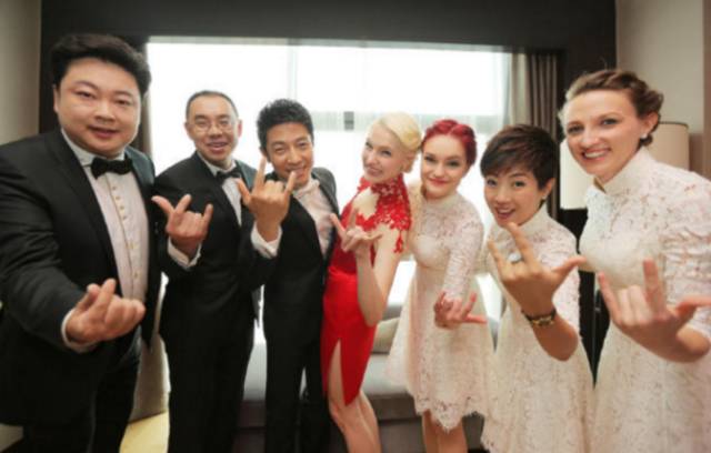 撒贝宁夫妇与来宾合影——