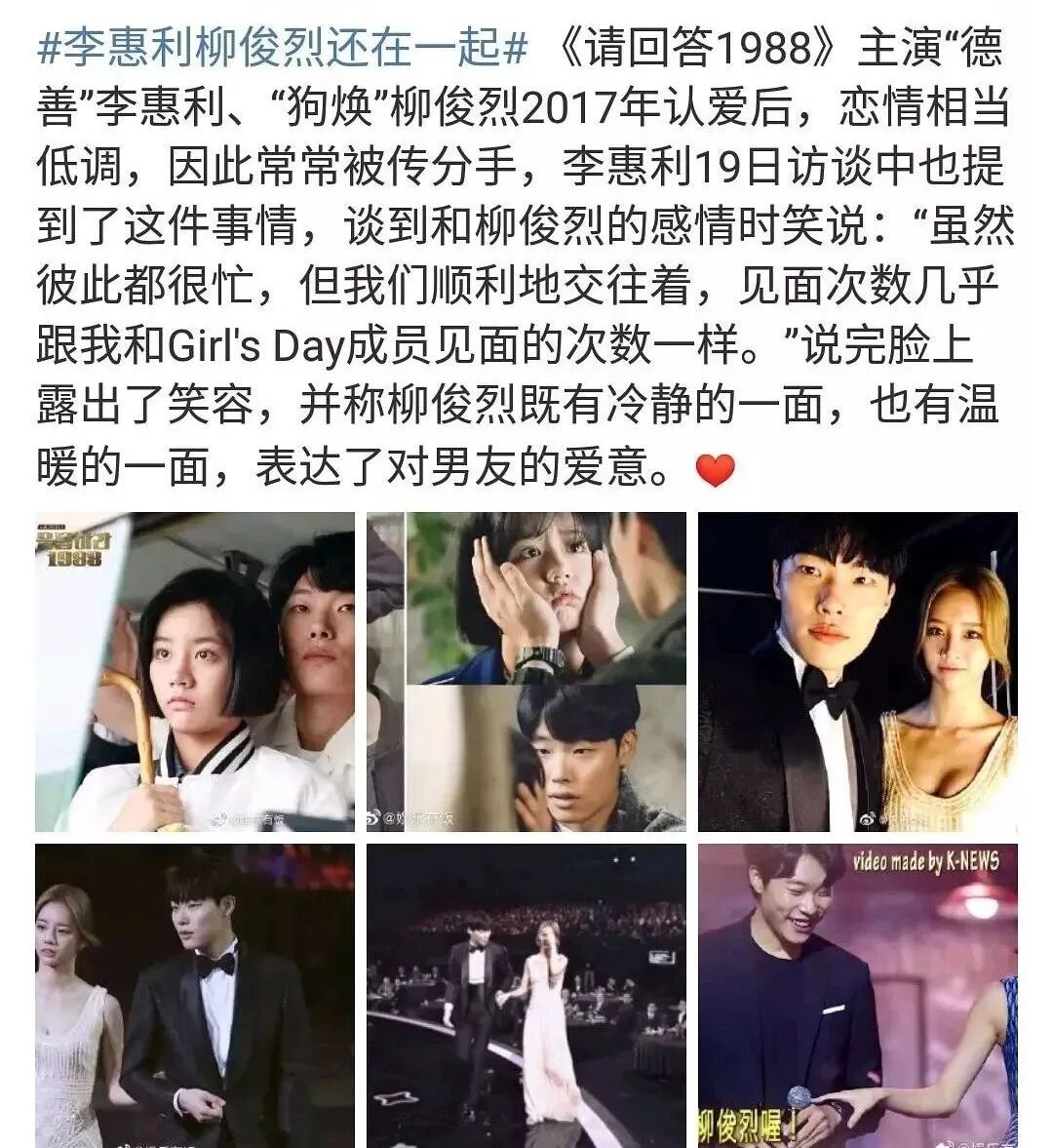 可是,他们完全不是喜欢秀恩爱的个性,从公开在一起的那天起,很少有同框的机会,以致于大家后知后觉地感叹:“李惠利和柳俊烈居然还在一起!”