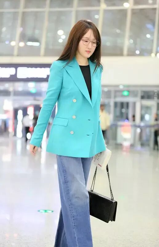 蓝色的衣服显得人看起来有些老气了,这个颜色比较亮,所以没有那么的好看。搭配阔腿裤的话就好一些,不会很土了。只不过素颜的杨钰莹就显得有点沧桑了,没有那么的有气质。