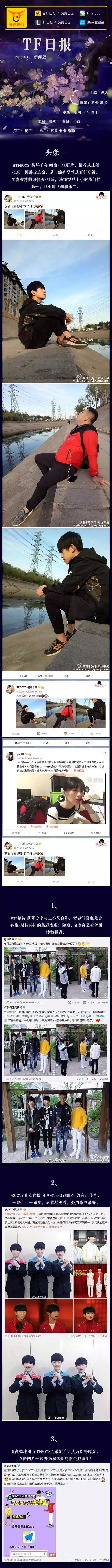 『TFBOYS』TF日报 -不负责任组>>2016<<0418期 TF日报不负责任组 内地男星 2016-04-19 13:08:22 601 创作不易,用心坚持,欢迎请BaGua喝几杯爱心咖啡!打赏并支持本文 打赏并删除本文 #TFBOYS# #TF日报(不负责任组)# 【20160418】千主编发博调侃胖虎像球,大家还不赶紧运动起来!钟镇涛前辈今日分享与@TFBOYS组合 合影两张!谢谢前辈照顾!@CCTV看点 今日分享@TFBOYS组合 的音乐传奇之路,努力追梦,问心无愧! 创作不易,用心坚持,欢迎请BaGua喝几杯爱心咖啡!打赏并支持本文 打赏并删除本文 感谢您的支持鼓励,我会继续努力的!文章地址:用户邮箱:打赏金额:USDT 请输入数字点击”去打赏“,即可进行打赏支持本文章哦 tfboys About the Author TF日报不负责任组 功能介绍:微博@TF日报-不负责任组 每日一报★投稿邮箱: [email protected] 因为关注,所以疯狂(划掉,差评)高冷. Related Posts 『TFBOYS』TF日报 -不负责任组>>2018<<1206 2018-12-07 18:49:11 『TFBOYS』TF日报 -不负责任组>>2016<<0609期 2016-06-10 12:48:01 TFBOYS』TF日报 -不负责任组>>2016<<0602期 2016-06-03 10:09:35 『TFBOYS』TF日报 -不负责任组>>2016<<0418期 2016-04-19 13:08:22 『TFBOYS』TF日报 -不负责任组>>2016<<0405期 2016-04-06 12:22:42 发表评论