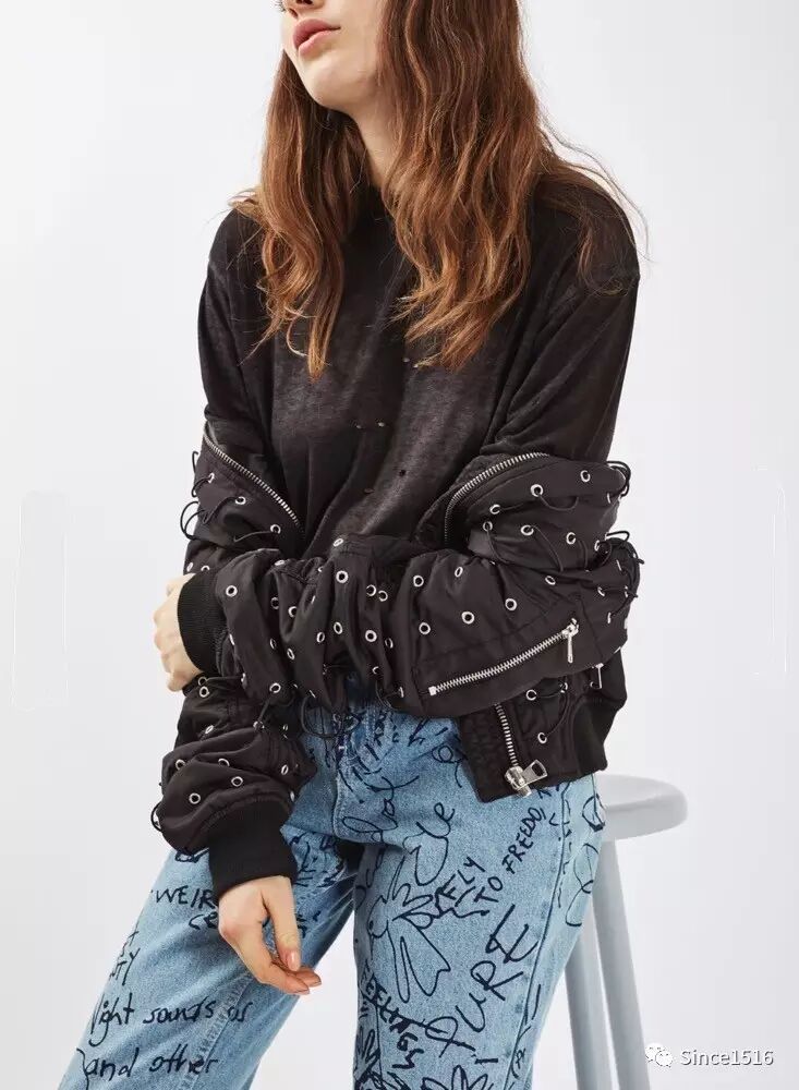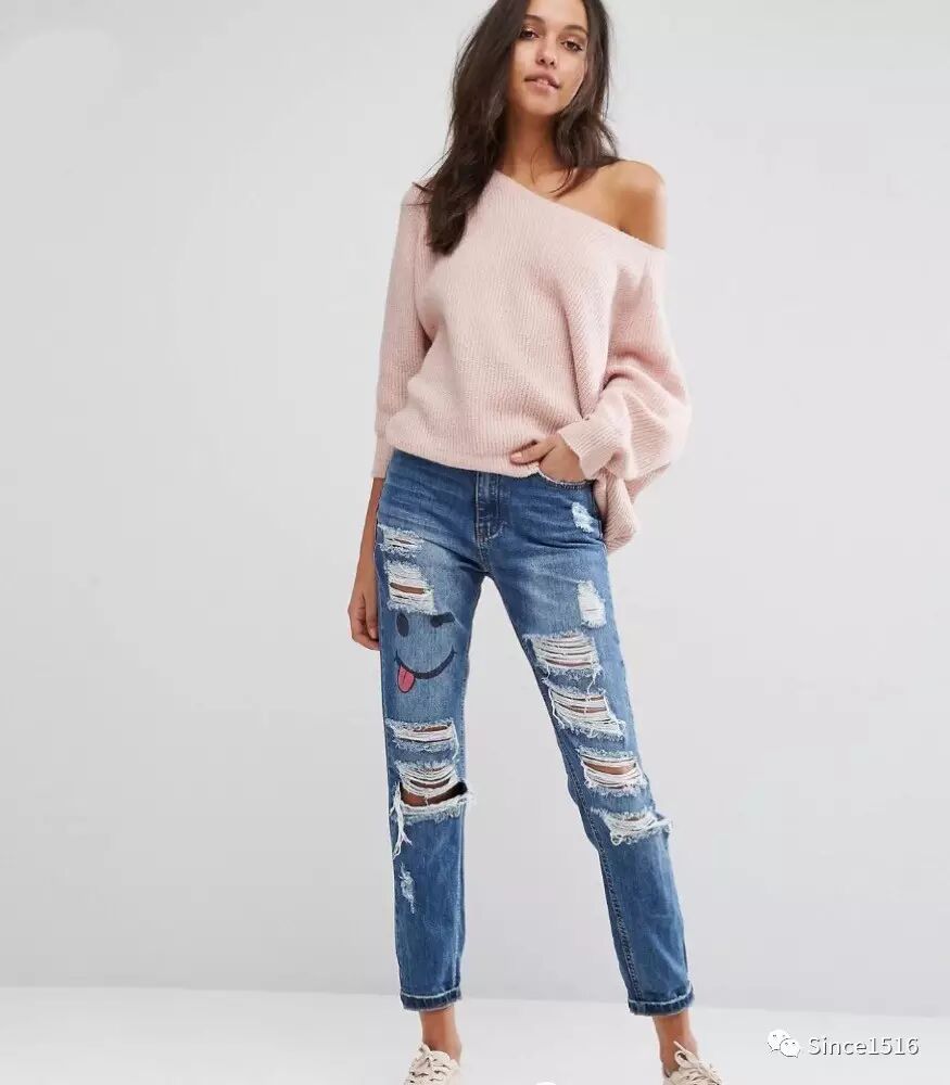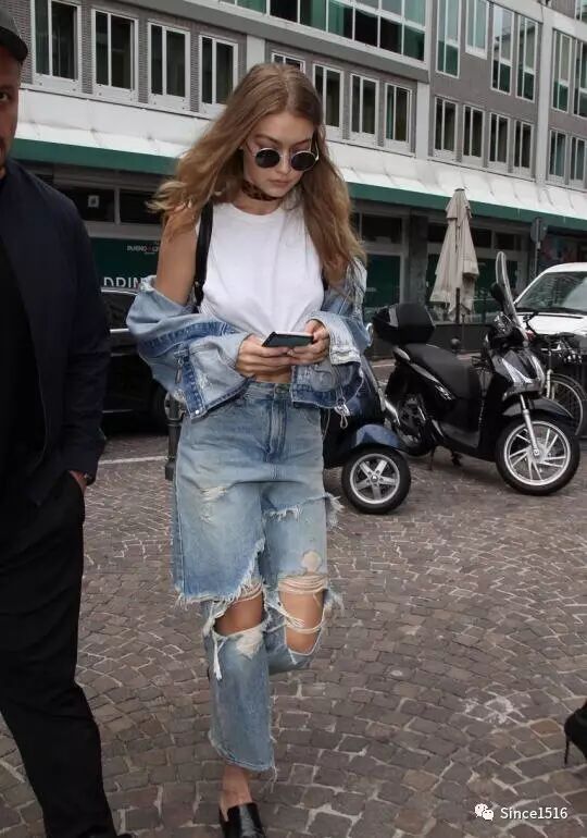 珍珠本是优雅高贵的,运用在破洞牛仔裤上非但不感觉唐突,反而别有一番韵味。