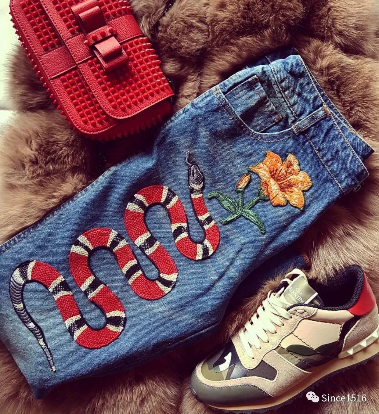 印花jeans,不是所有人都敢穿出门的款,不过Since1516想和你说,不是时尚达人才能驾驭它,而是穿上它的人才叫时尚达人。
