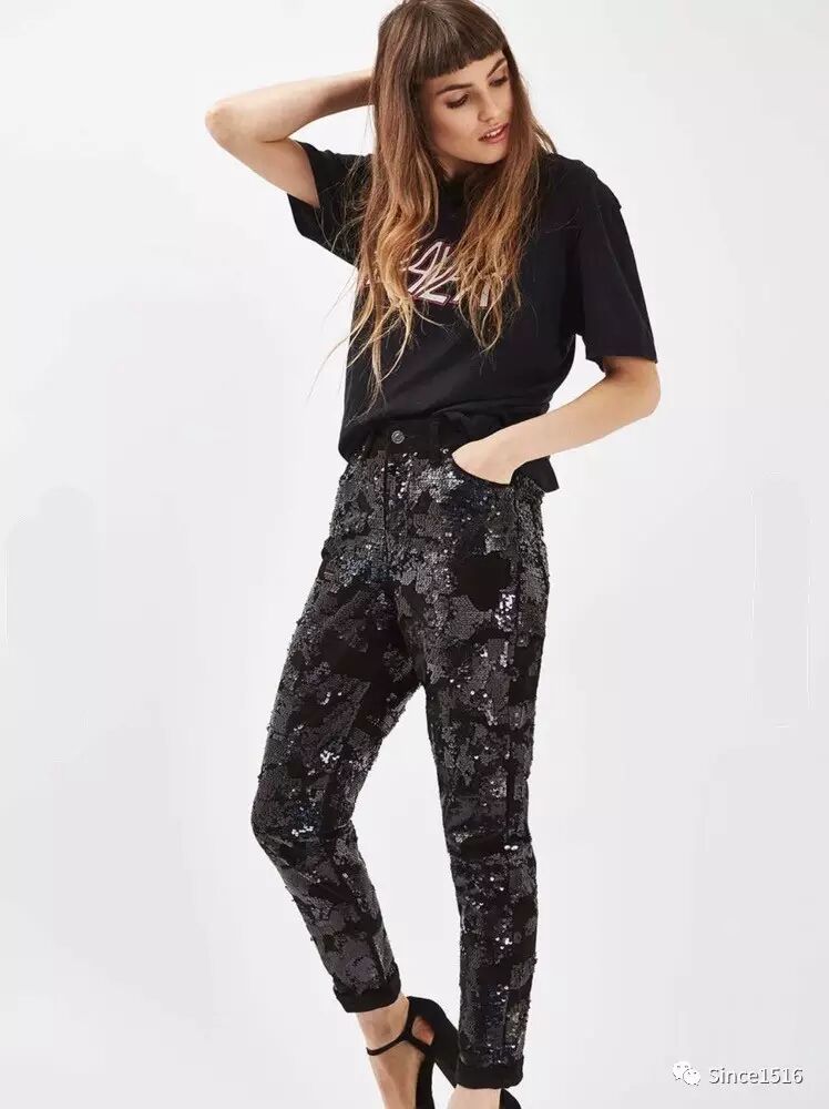 亮片jeans,全身都透露着'姐最炫酷'的feel,白天穿很chic,晚上穿很亮。
